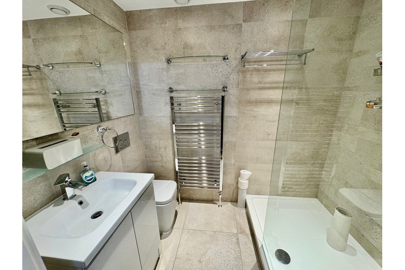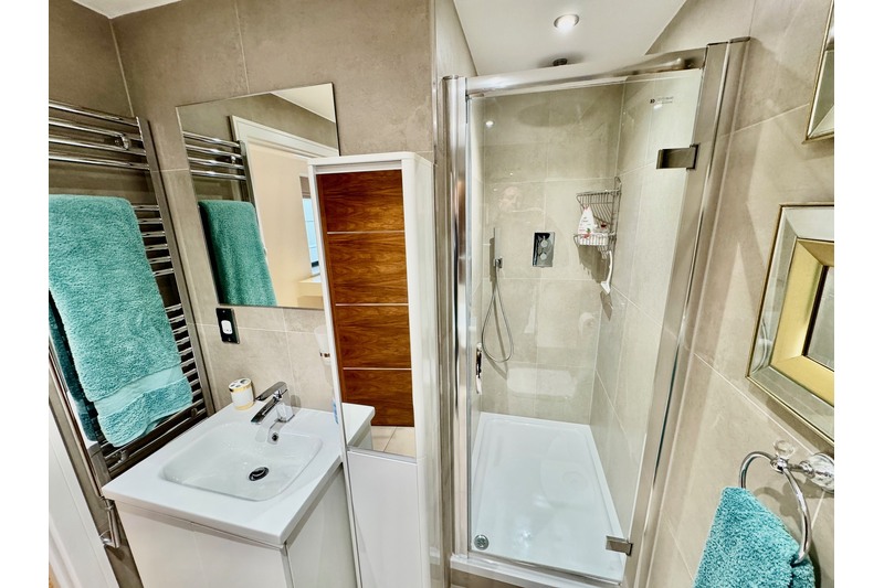+ En-suite shower room with tiled floor double width shower cubicle, hand basin & WC.